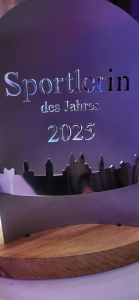 Ihre sportlichen Leistungen aus dem Jahr 2025 – 3 Pfalzmeister-Titel (400 m, 5.000 m, Berglauf), 2. Platz in der AK beim Frankfurt Halbmarathon mit einer Verbesserung der PB im HM auf 1:40:35 h, Siegerin in der AK beim Pfälzer Berglaufpokal durch 5 Siege in 6 Läufen, 2. Platz in der AK beim Aletsch Halbmarathon über 1.200 Hm, 1. Platz in der AK beim Inferno Halbmarathon über 2.175 Hm mit ebenfalls neuer PB, 2. Platz in der AK bei der Winterlaufserie Rheinzabern – überzeugten die LeserInnen der Rheinpfalz und letztendlich auch die Jury, dass sie die Sportlerin des Jahres 2025 ist.